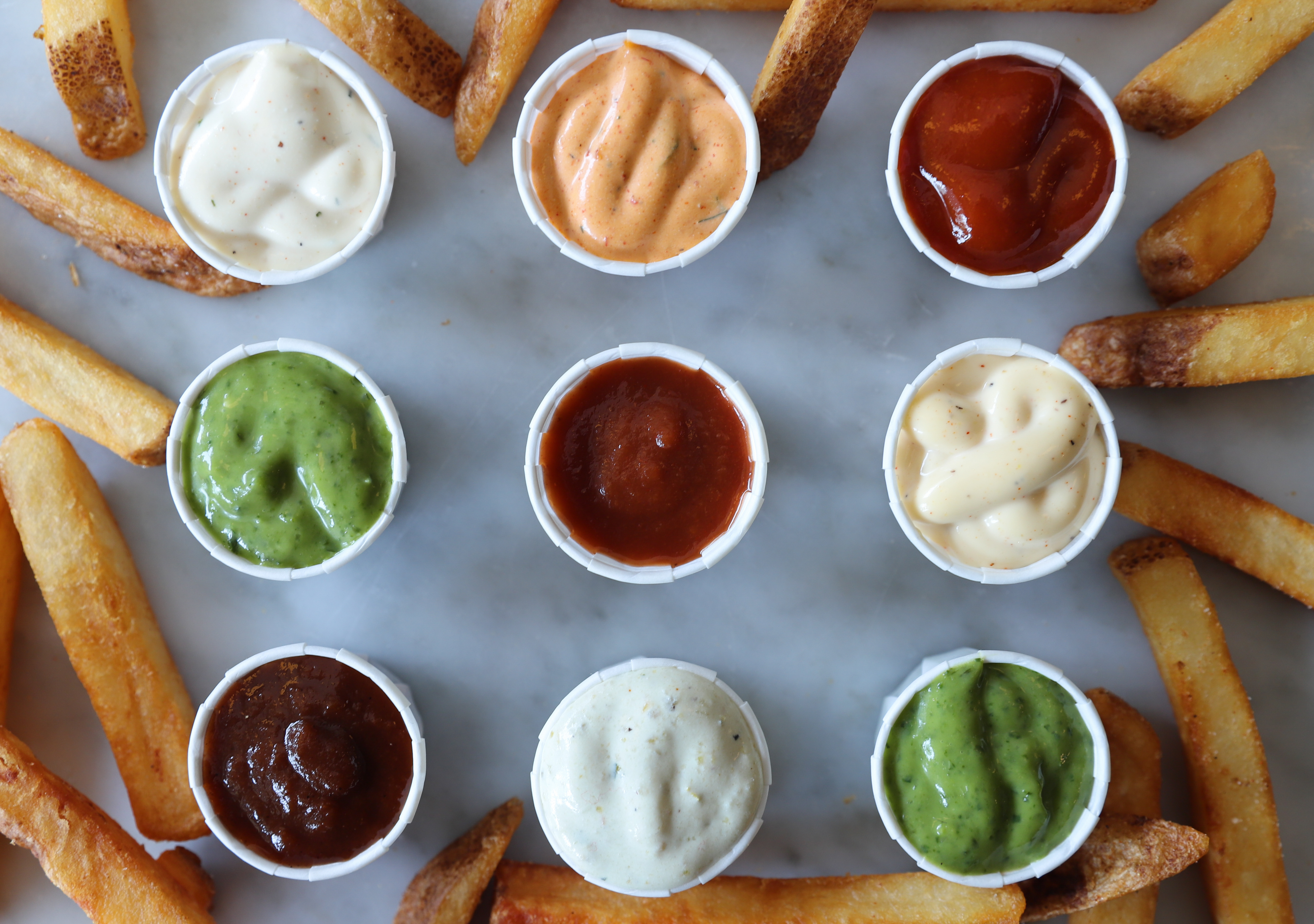 Home Frite specializes in thick-cut fries made from russet potatoes paired with delicious homemade sauces all served in an attractive cone. .
