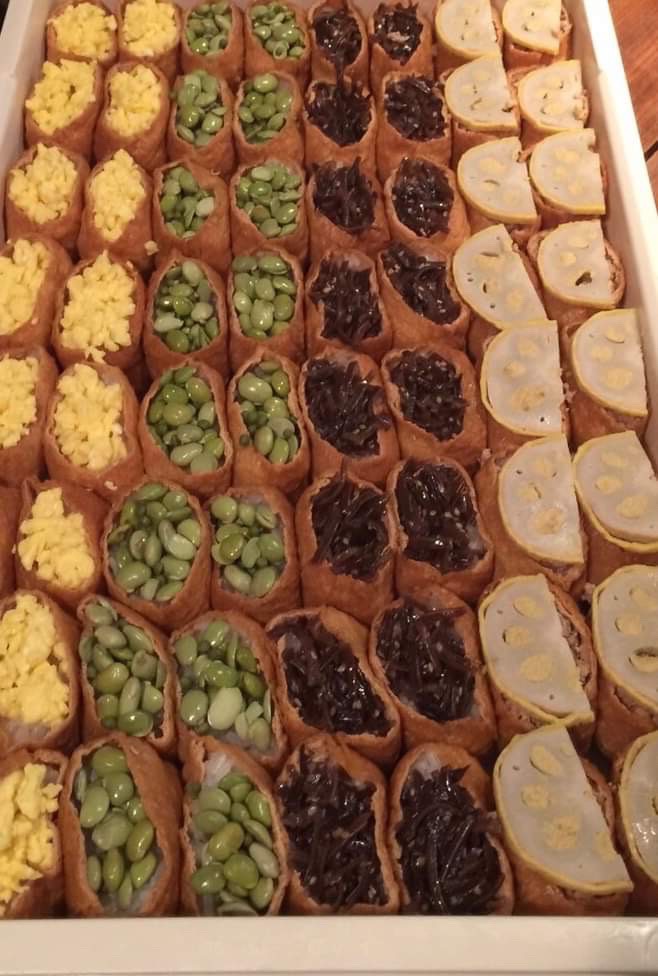 ニューヨーク向けにビーガン向けも楽しめる四季の食材を使った彩り美しい「オープン稲荷寿司」。