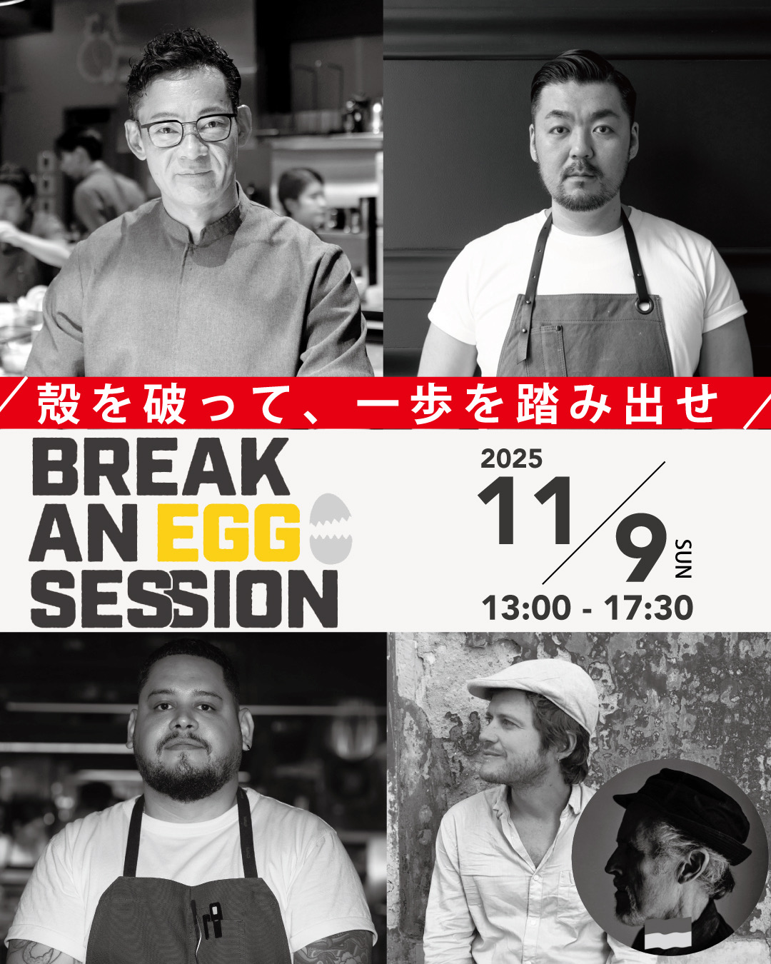 “Break an Egg”とは…フランスの諺, ”On ne fait pas d’omelette sans casser des œufs”(卵を割らずにオムレツを作ることはできない)”になぞらえ、「冒険なしに成果は得られない」の意。自身の殻、常識の殻を破り、挑み続けるシェフ達が登壇。世界の食の最先端を知るジャーナリストも国内外から参加、世界視点で食業界を語る貴重な機会。是非ご参加ください。